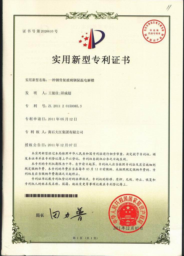 一、 實(shí)用新型電解槽(本公司專利產(chǎn)品ZL201120150085.3)